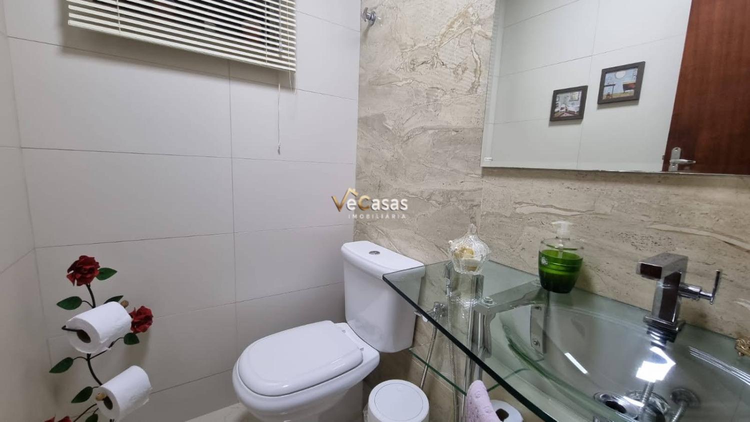 Andar térreo: salão com 2 ambientes, estante planejada, escada dando acesso para sala e copa, jardim de inverno, lavabo, cozinha com armários planejados, copa, varandão em toda casa, área encimentada com espaço para piscina, chuveirão, cozinha gourmet com churrasqueira e moveis planejados, banheiro, escada com acesso para a laje para futura construção, sistema de câmeras, interfone, portão eletrônico, garagem com 2 vagas 03 cisternas com capacidade de 7.500L e 2 caixas d'água com capacidade de 1.000L cada.