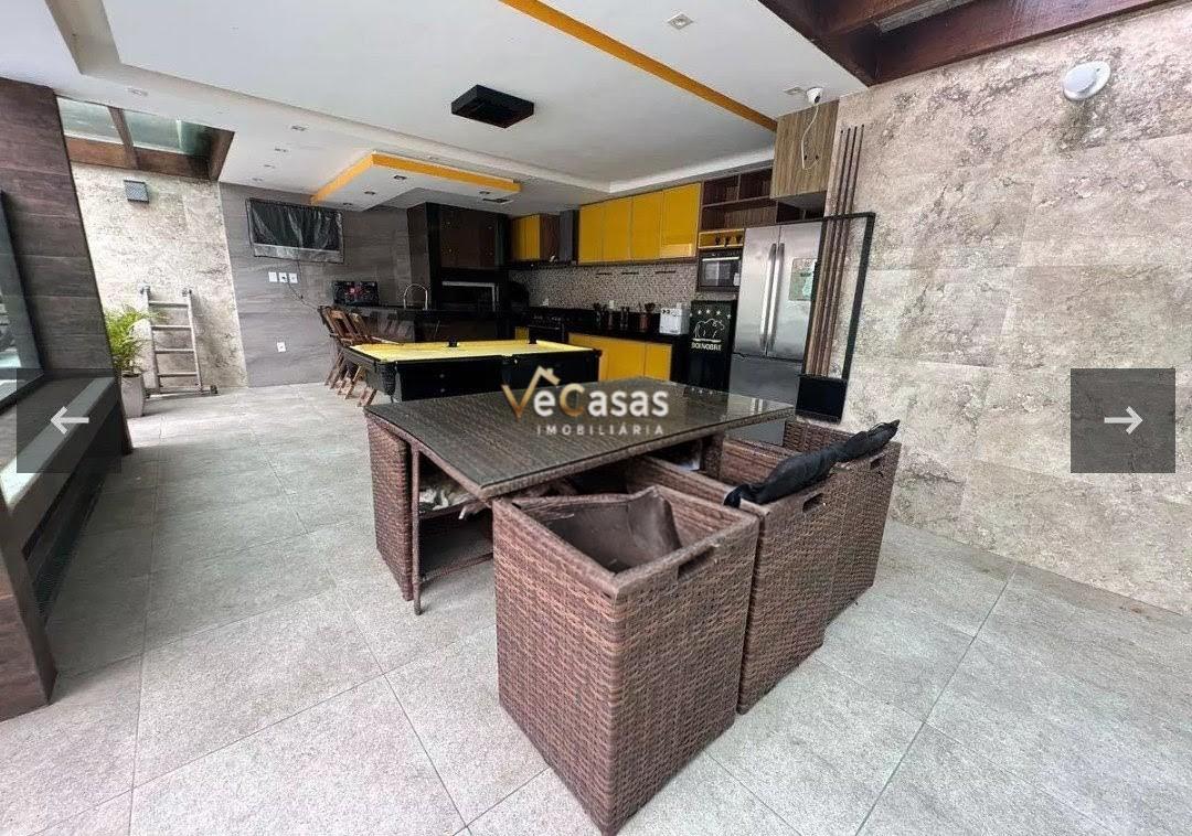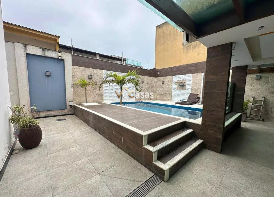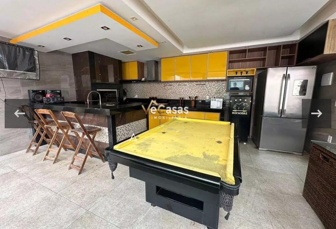 - Área externa: Piscina, churrasqueira com mesa para 6 pessoas, mesa de sinuca, banheiro de apoio e 4 vagas de garagem.