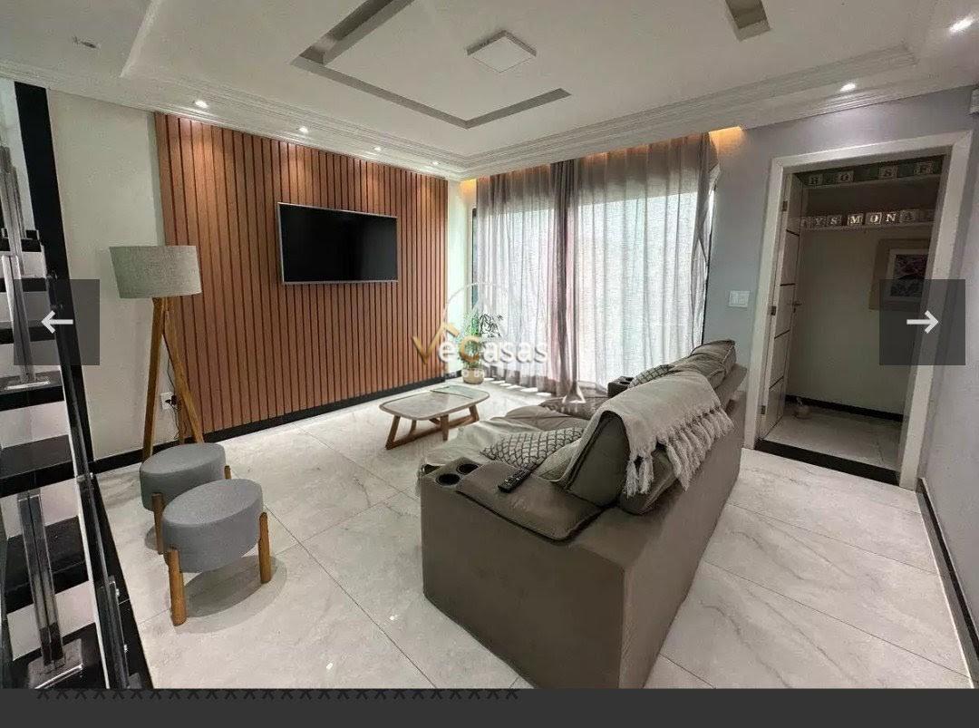 - No piso superior: Sala de TV e 3 suítes, sendo a suíte de frente com closet e a suíte master com closet e varanda.